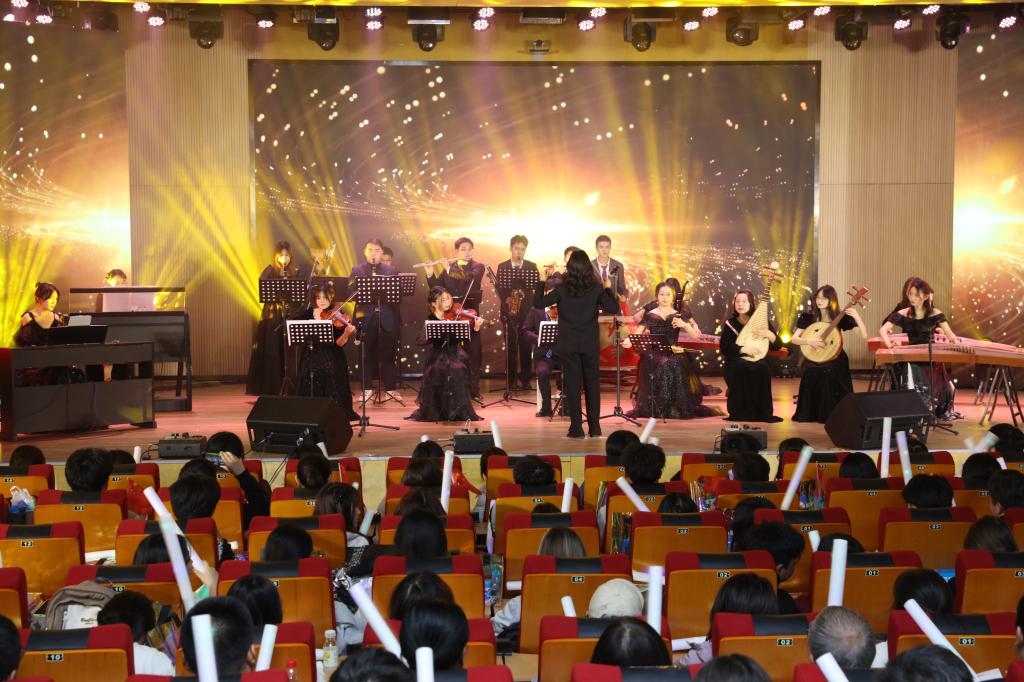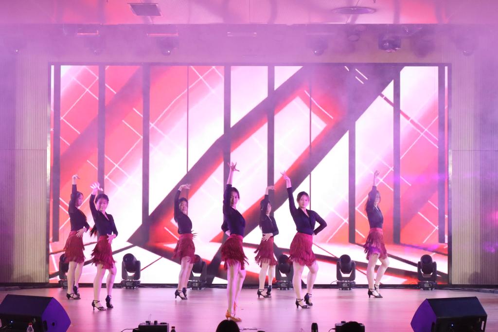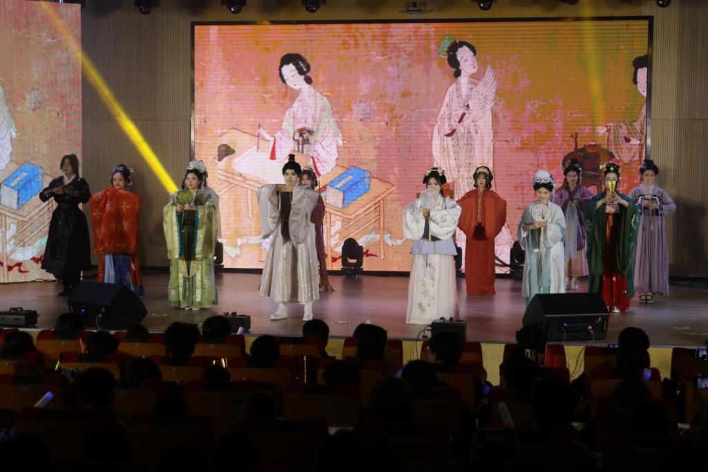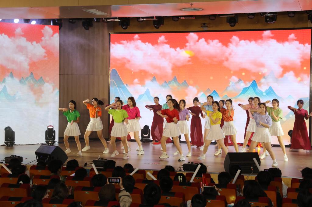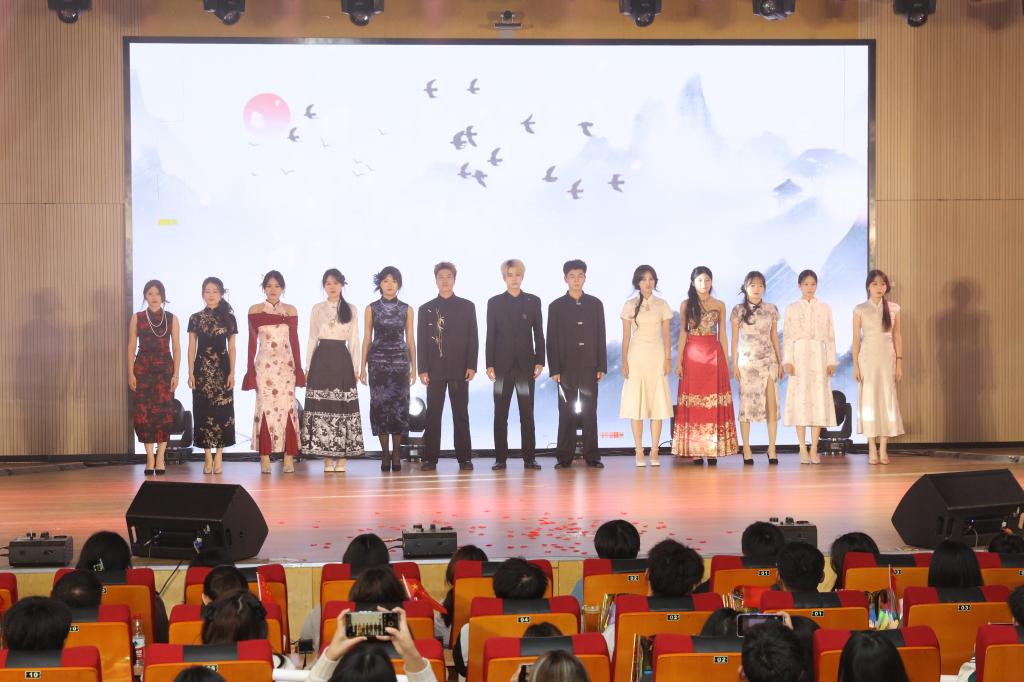 晚会进入第二篇章:礼赞—绘青春之采。乐团合奏《冬青颂歌》,多种乐器相互交织合奏,让人仿佛置身于历史的长河中,感受到时代的脉搏跳动;拉丁串烧《律动风华》,舞者们一颦一笑尽显动感激情,让每位观众都沉浸在拉丁的魅力之中;同学独唱《我是如此相信》,歌声悠扬、情感真挚,吐露着对梦想、对未来的坚定信念,引发全场跟唱;汉服社与礼模队带来的《古韵今风缘起霓裳》,将汉服的典雅与旗袍的婀娜巧妙融合,仿佛开启了一场穿越古今的时尚之旅。