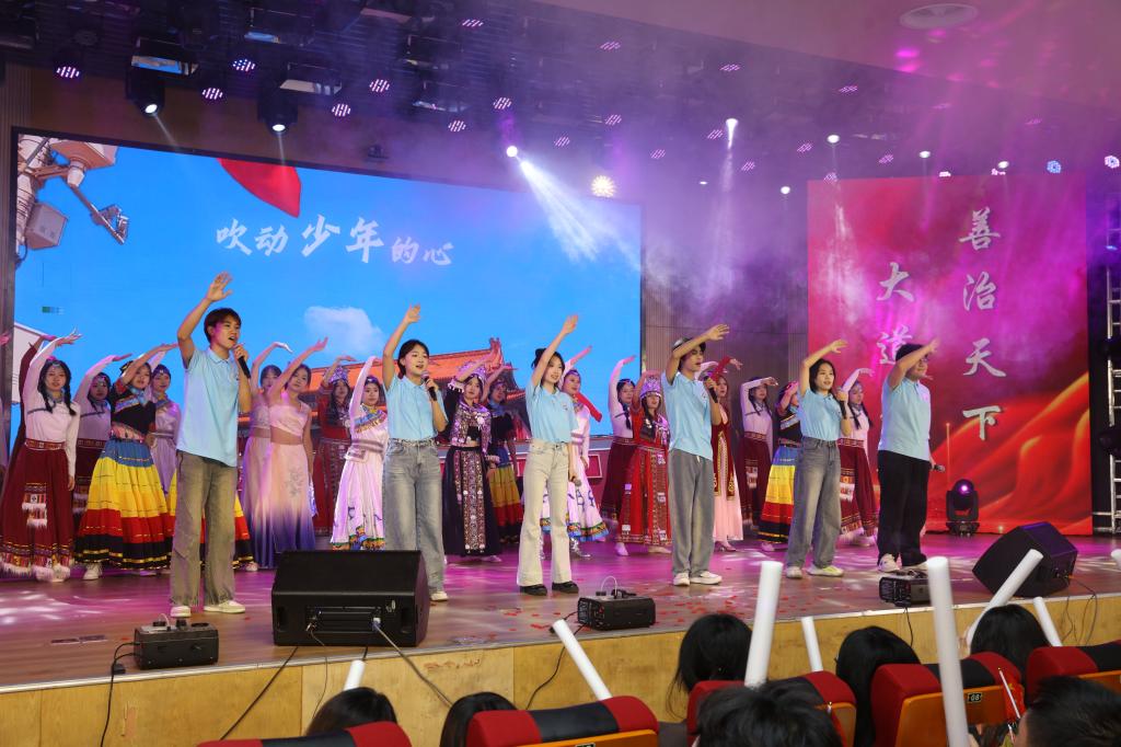 晚会开启第一篇章:薪火—燃时代之光。一首《New boy》,唱出了每位同学对未来的憧憬与向往。随后,舞台剧《师与远方》演绎出教师们的无私奉献精神,紧紧调动着观众的情绪。师生间的深情厚谊,追梦路上的坚持奋斗,深切打动了观众。合唱《奔跑》活力四射,激昂奋进,同学们用嘹亮的歌声和饱满的精神,展现出勇往直前、追逐梦想的决心。爵士舞《爱的主打歌》动感而洒脱,舞者们随着明快的节奏尽情挥洒青春。