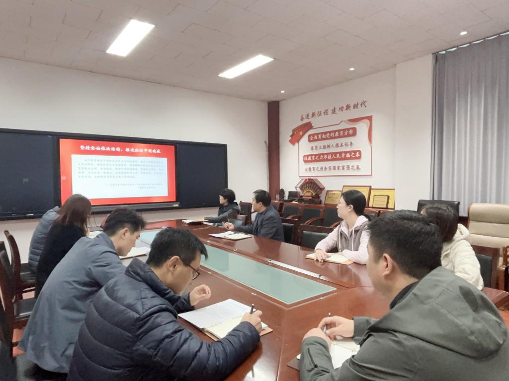 会议指出,习近平法治思想内涵丰富、论述深刻、逻辑严密、系统完备,是习近平新时代中国特色社会主义思想的重要组成部分,是新时代全面依法治国的根本遵循和行动指南。党的二十届三中全会审议通过的《中共中央关于进一步全面深化改革、推进中国式现代化的决定》,专章部署“完善中国特色社会主义法治体系”,是贯彻落实习近平法治思想的重要举措。我们要深刻把握习近平法治思想的精髓要义和实践要求,将学习贯彻习近平法治思想与学习贯彻党的二十届三中全会精神结合起来,深刻领会习近平总书记关于法治建设的新思想、新观点、新论断,把习近平法治思想贯穿到学院工作的各方面、全过程,努力做到学懂弄通做实。