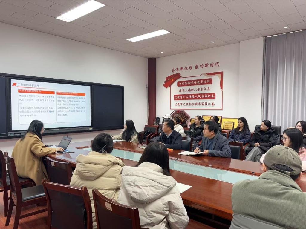 党支部书记任傲雪带领支部党员深入学习了党的二十届三中全会的基本概况、公报内容以及会议精神的感悟,重点学习了健全绿色低碳发展机制以及山东省关于绿色低碳发展的响应政策和成果。