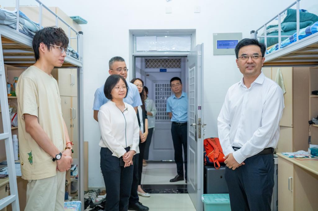 领导班子陪同下,深入走访章丘校区学生宿舍、燕山校区毕业生宿舍,与同学们亲切交流,详细了解他们的学业进展、生活近况、就业状况与未来规划,并针对考研备考、海外访学、求职面试等问题给予指导。他叮嘱同学们要坚定信心,保持良好心态,加强身体锻炼,以饱满的热情和昂扬的斗志投入学习和工作中。