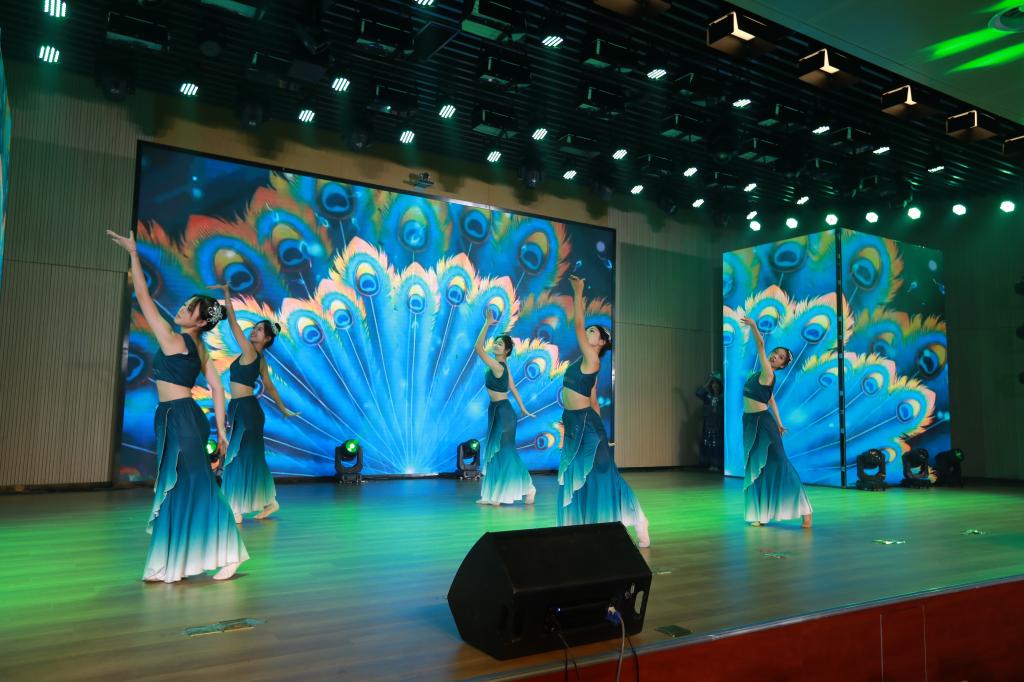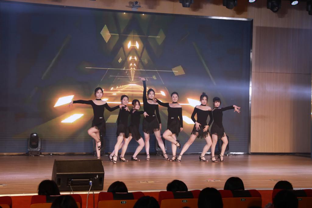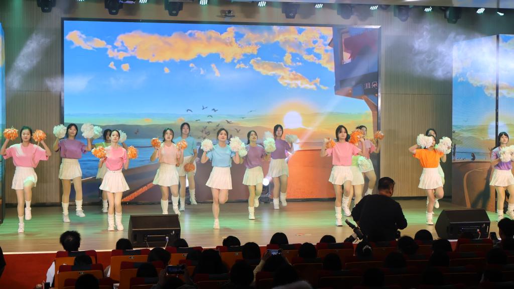 第二篇章“执梦逐光·绘青春”为青春梦想注入活力。情景舞台剧《反诈银行》寓教于乐,为新生带来一堂别开生面的安全教育课;拉丁舞《Latin girl》舞步热情奔放,尽显异域风情;和声合唱《夜空中最亮的星》旋律动人,引发全场共鸣,激励学子勇敢追梦;古今风尚秀《衣冠承古·秀领今朝》与扇舞《万疆》,展现了古今青春风华的对话,激发了青年学子的家国情怀。