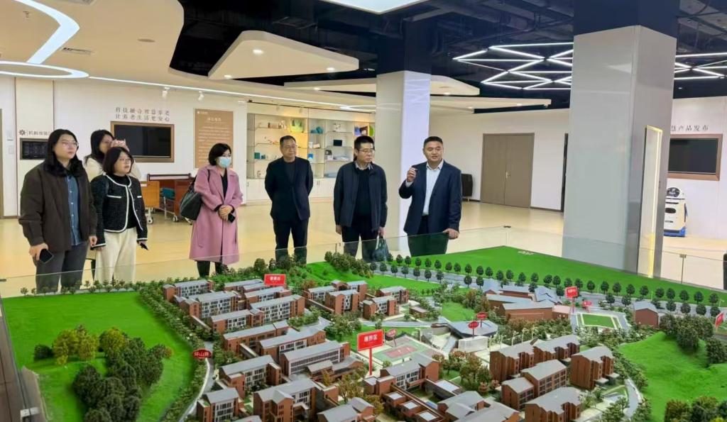 一行参观了山东济南养老服务中心展厅及相关服务场所。负责人详细介绍了金龄健康的发展历程及其在养老事业、养老产业、康养旅居、培训教育四大板块的布局与发展情况。随后,学院一行深入现场了解了普惠养老区、康养专区、医护区及培训中心的功能定位、专业设施及服务特色等,对该中心全周期、多层次、专业化的康养服务体系有了全面认识。