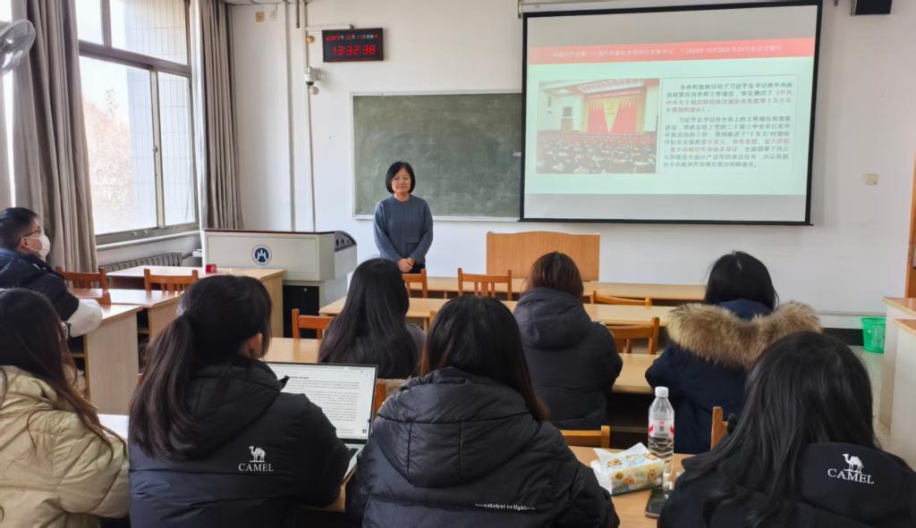 贾海彦院长结合公共管理学科的理论框架与中国治理实践,对全会精神的核心内容进行了深入解读。他重点分析了当前国家治理面临的新形势新任务,阐释了全会提出的新思想、新论断、新要求,特别是关于完善中国特色社会主义制度、提升治理效能等方面的决策部署。他强调,公共管理学科的研究生作为未来公共治理领域的重要后备力量,必须主动将学术研究与国家发展需求紧密结合,深刻理解中国式现代化的本质要求与治理逻辑,不断提升运用党的创新理论分析和解决实际公共管理问题的能力。