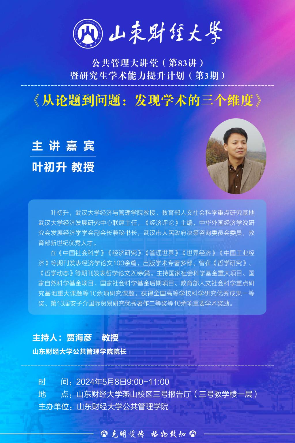 公共管理大讲堂(第83讲)暨研究生学术能力提升计划(第3期):从论题到问题:发现学术的三个维度