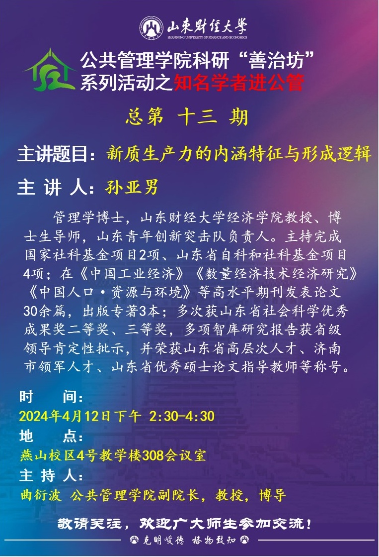 注册送彩金白菜 科研“善治坊”系列活动之知名学者进公管总第十三期:新质生产力的内涵特征与形成逻辑