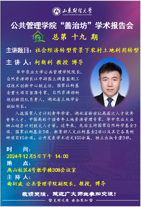 注册送彩金白菜 “善治坊”学术报告会总第十九期