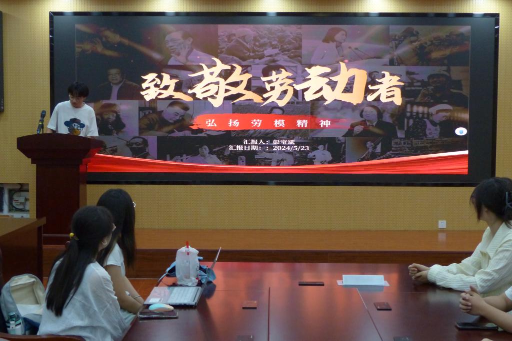 刘梦宇通过详尽丰富的PPT分享劳动价值观与意义、奋斗精神的内涵,告诉大家美好生活需要靠劳动创作、梦想实现需要奋斗支撑。他热情号召大家作为千禧一代,在凭借自己的智慧和毅力创造价值的同时,要懂得用劳模精神指引前进的方向,做服务社会的先锋。