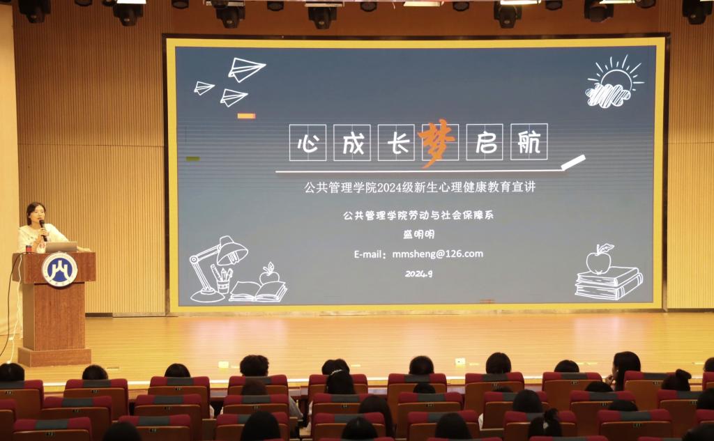 (通讯员 张心仪 摄影 王俊乔)为帮助新生更好地适应大学生活,引导新生关注自身心理健康,提高心理调适能力,开启精彩的大学生活,9月26日,学院于圣井校区文化活动中心召开了2024级新生心理健康教育宣讲。此次宣讲由劳动与社会保障系教师盛明明主讲,2024级全体新生参加。