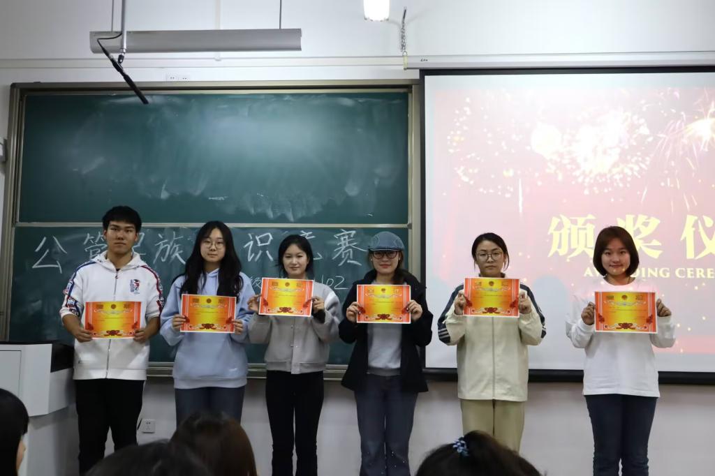 抢答题将比赛推向高潮,同学们聚精会神,现场气氛十分热烈。最后有六支队伍凭借默契的配合和丰富的民族知识,夺得佳绩。